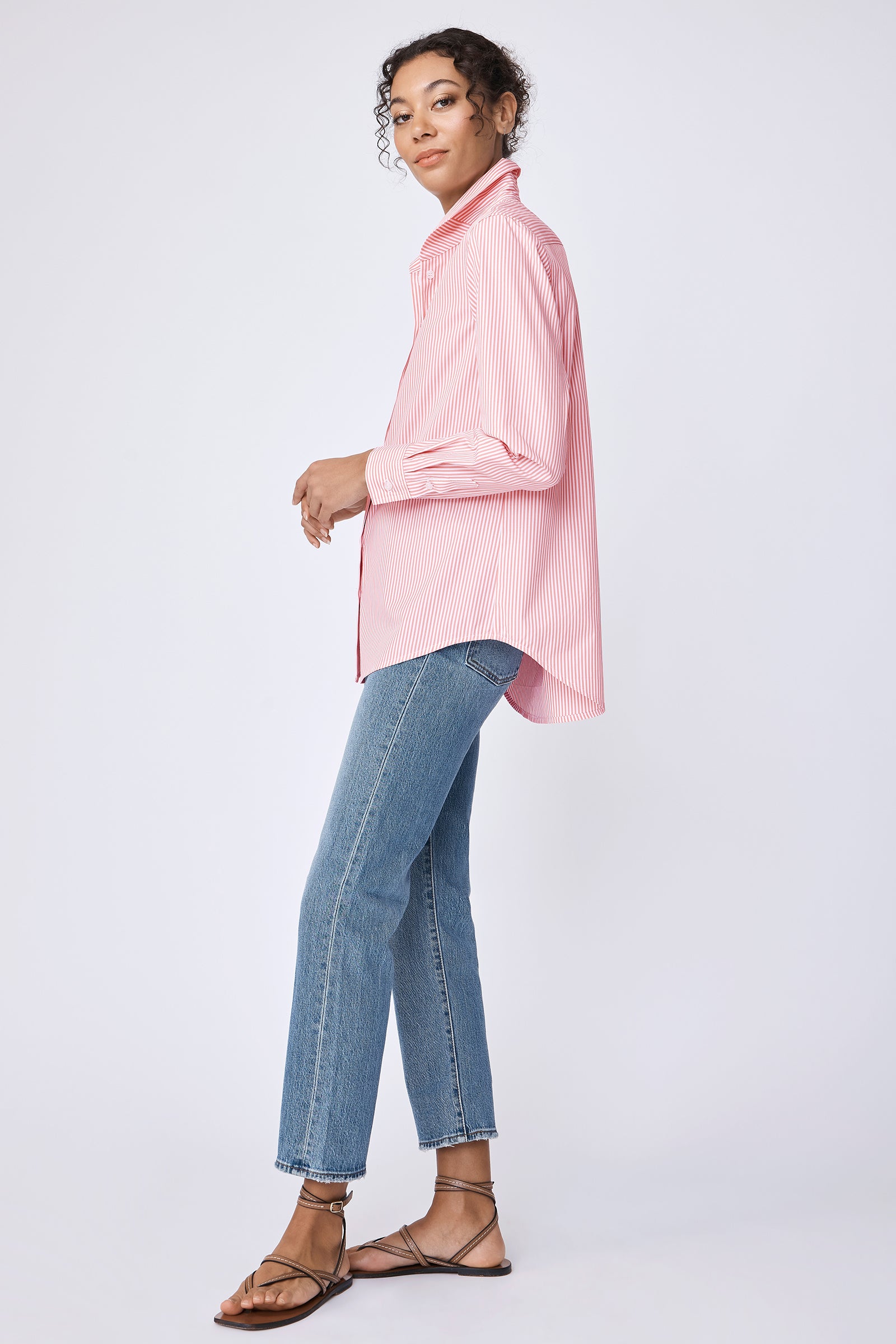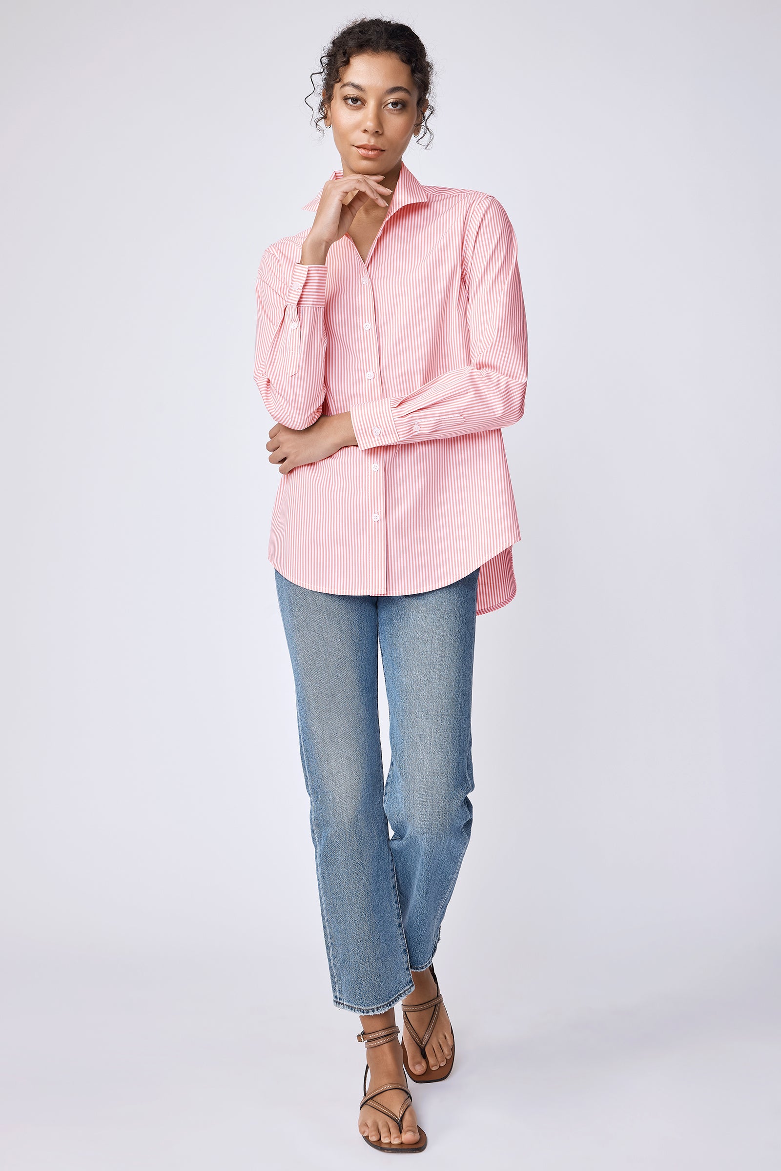 - Wake up your spring wardrobe our nostalgic stripes, a soft glow that feels like sunlight on your skin. Wear it tucked into high-waist jeans for a casual lunch with friends or layered under a blazer for effortless office polish. The back pleat makes the shirt move with you, keeping every step confident and easy. Small batch made in NYC for women who want their clothes to feel alive, not stiff.