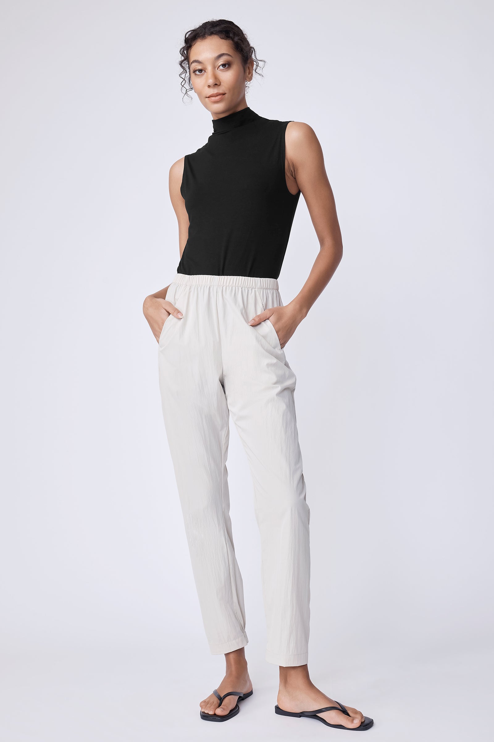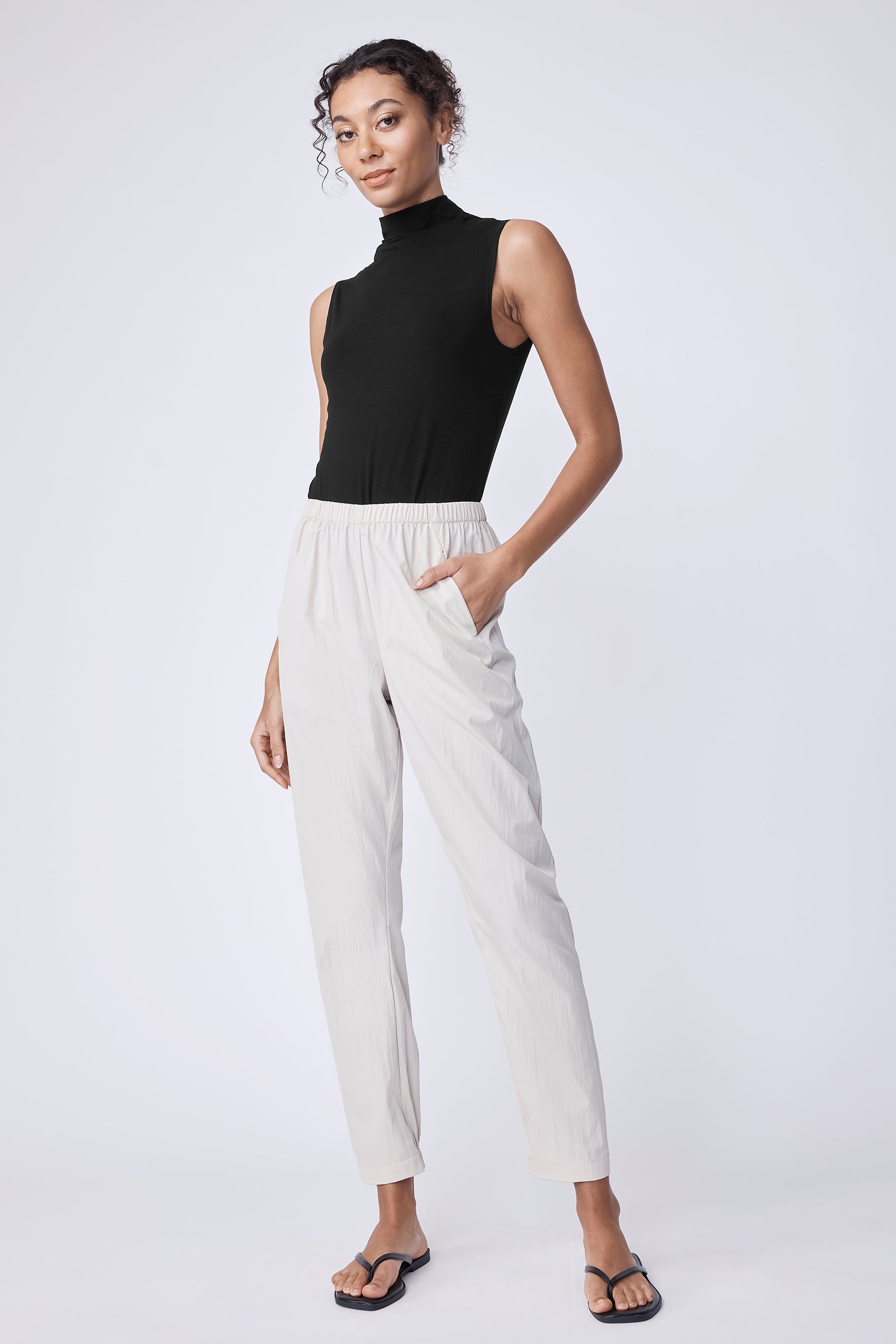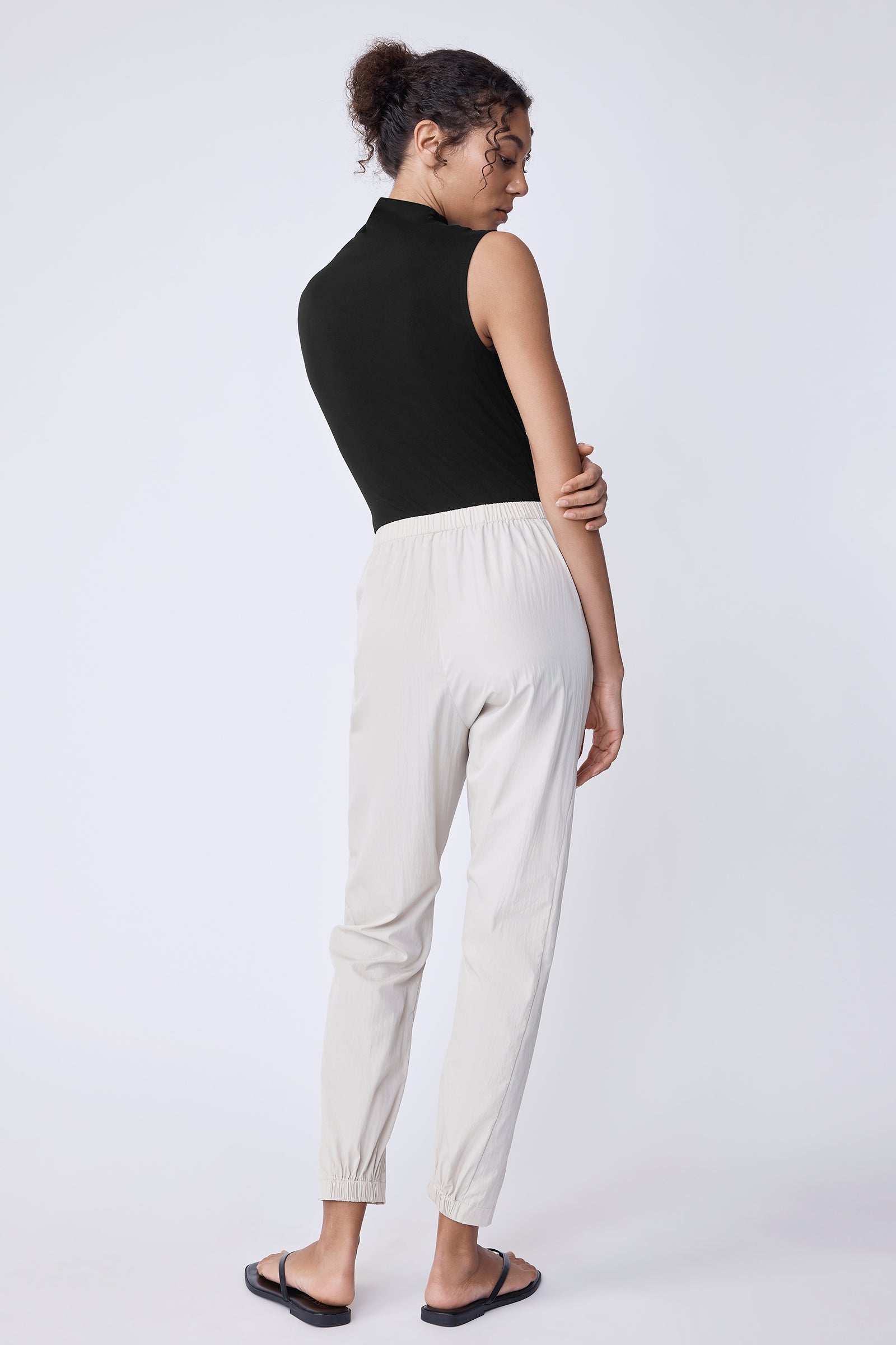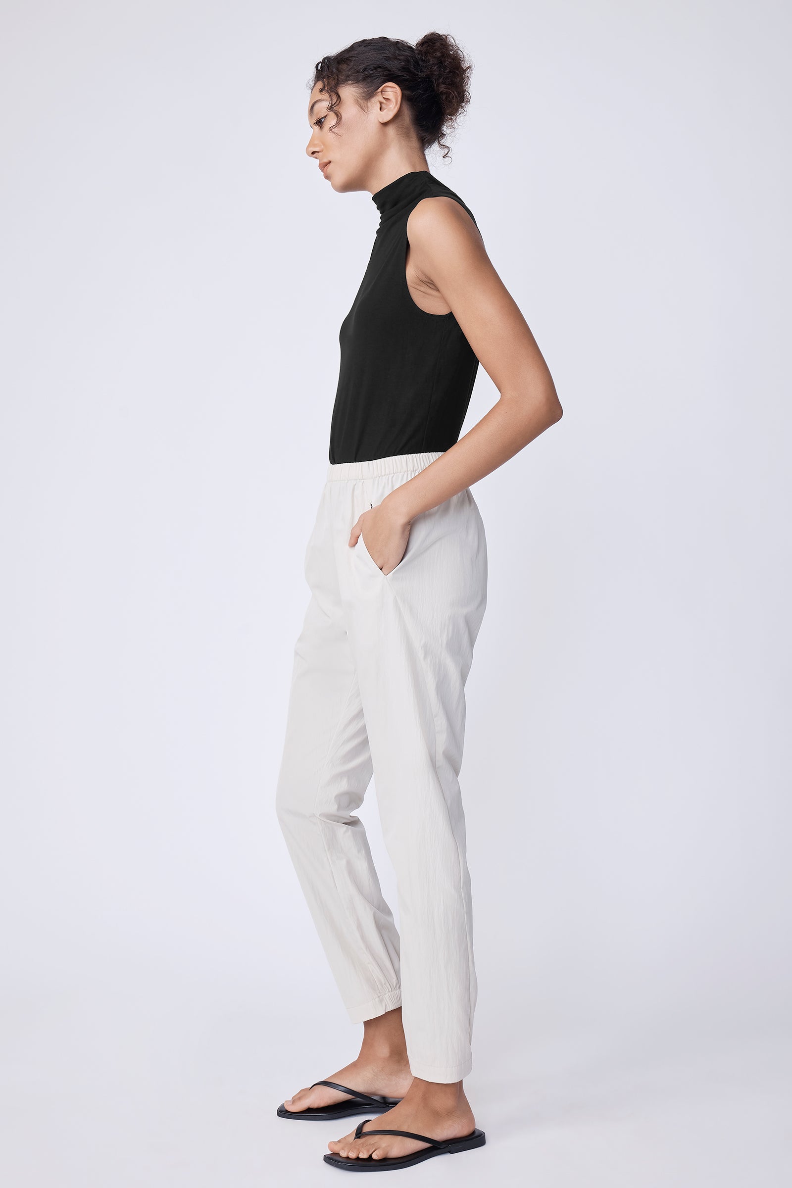 - Relaxed enough for weekend mornings, polished enough for terrace lunches. The subtle typewriter texture adds dimension while keeping the silhouette modern and effortless. Your go-to jogger for days that call for comfort without compromising style.