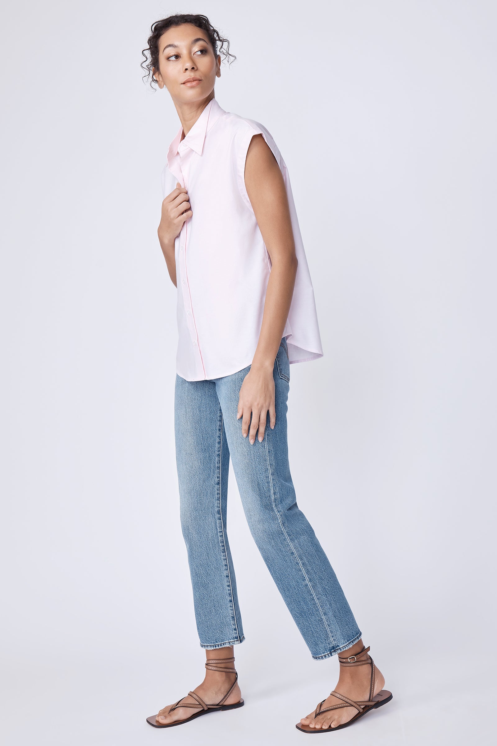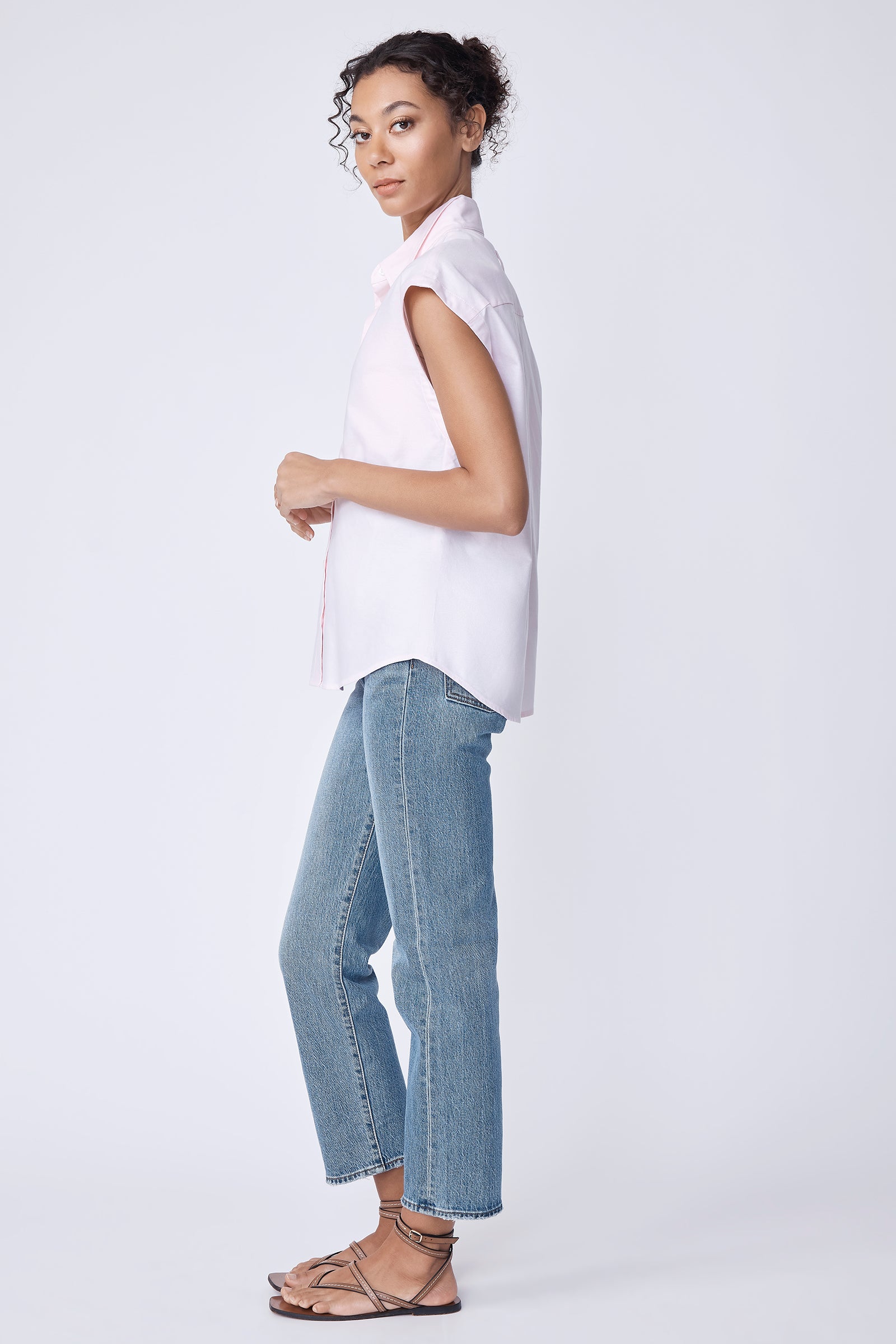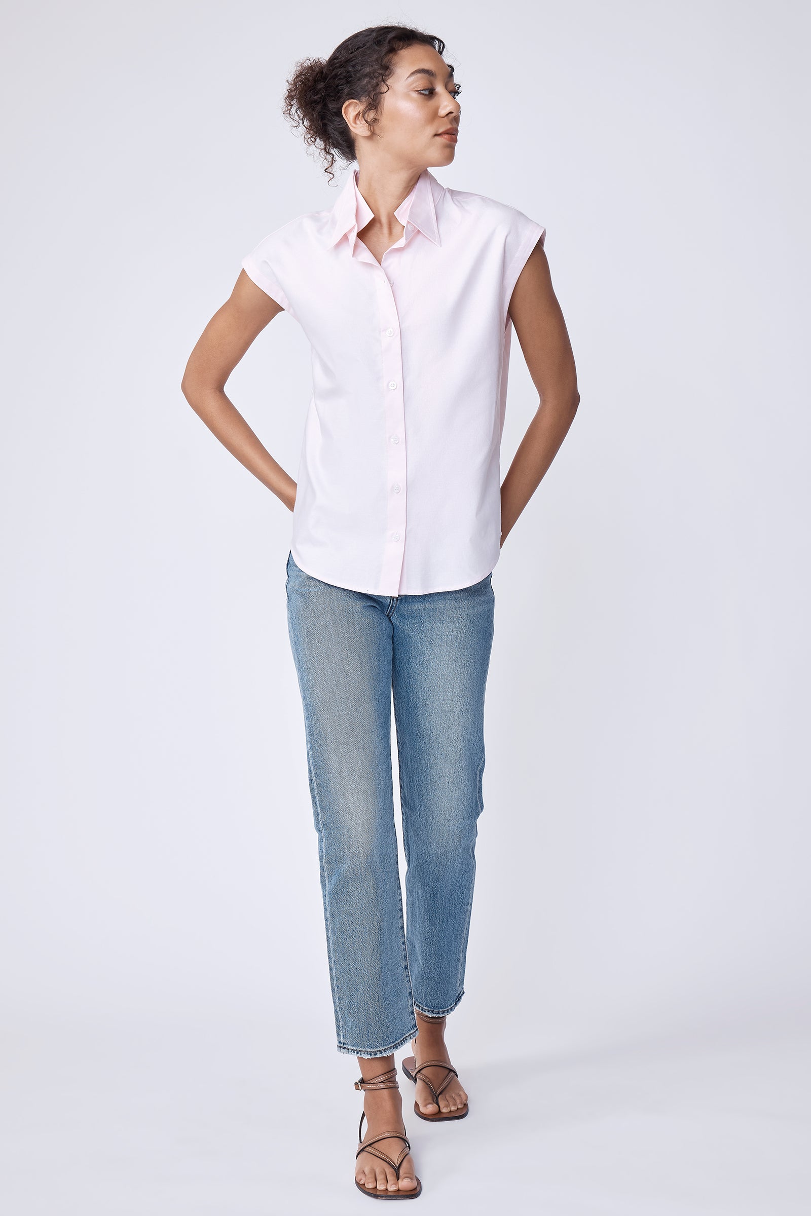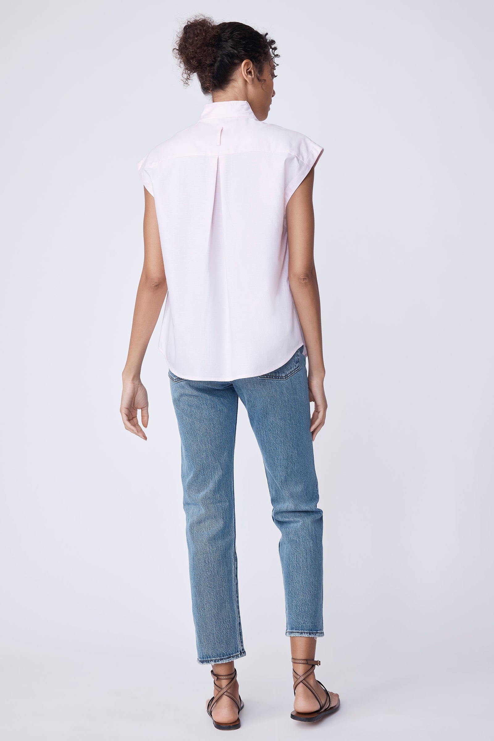 The Candice Cap Sleeve Shirt offers a fresh take on our signature double collar, reimagined in a cap sleeve silhouette for warmer days. Cut in our classic oxford shirting with an inverted back pleat, it allows for ease of movement without sacrificing structure. Ideal for Southern summers, travel days, and everywhere air-conditioning is unpredictable.