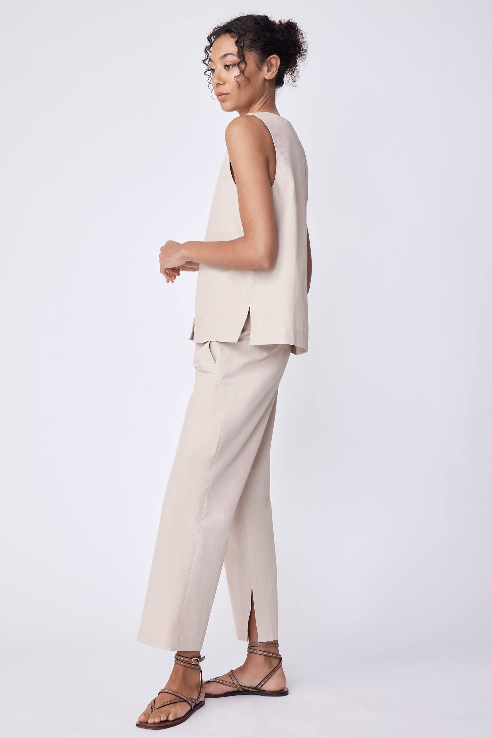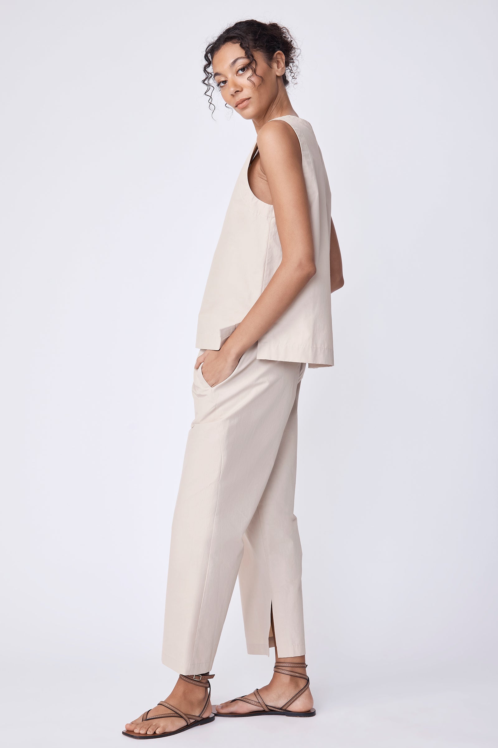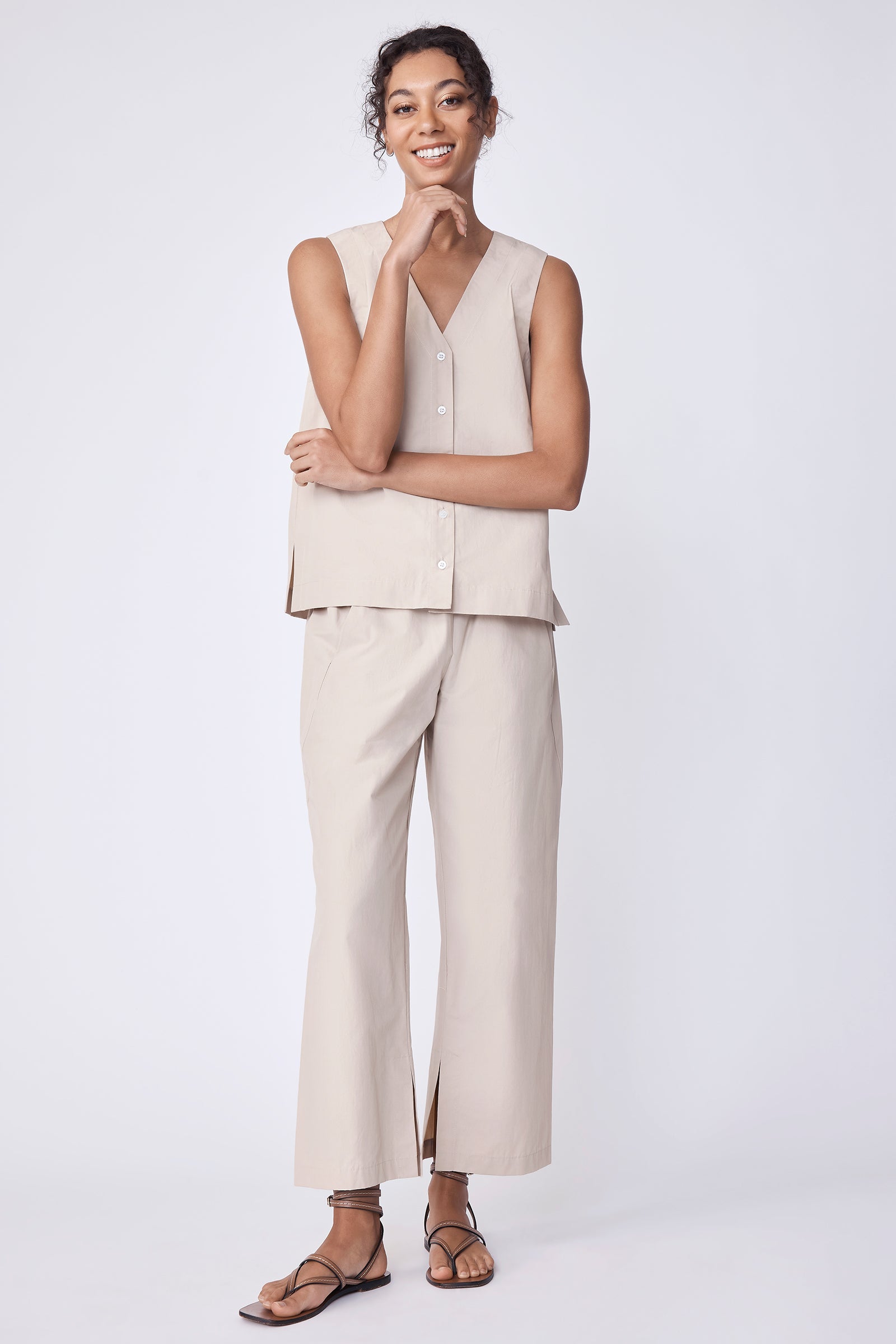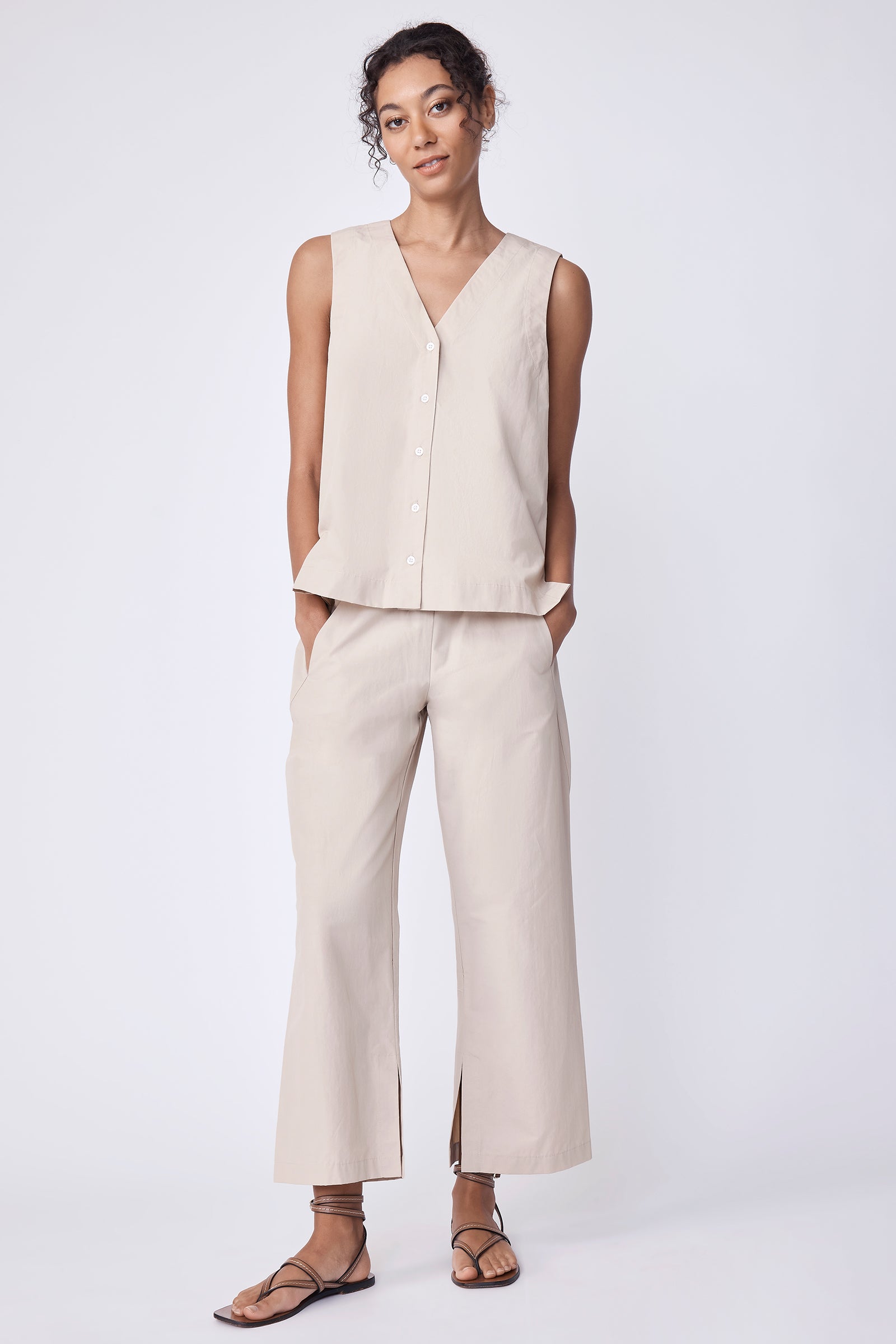 The Eden V-Neck Shell is all about summer simplicity, done right. Made in crisp Italian broadcloth, this button-front shell works beautifully on its own or as part of an easy set. Polished enough for daytime plans, relaxed enough for cooler evenings, it’s the kind of piece you’ll reach for again and again. Wear it anywhere.