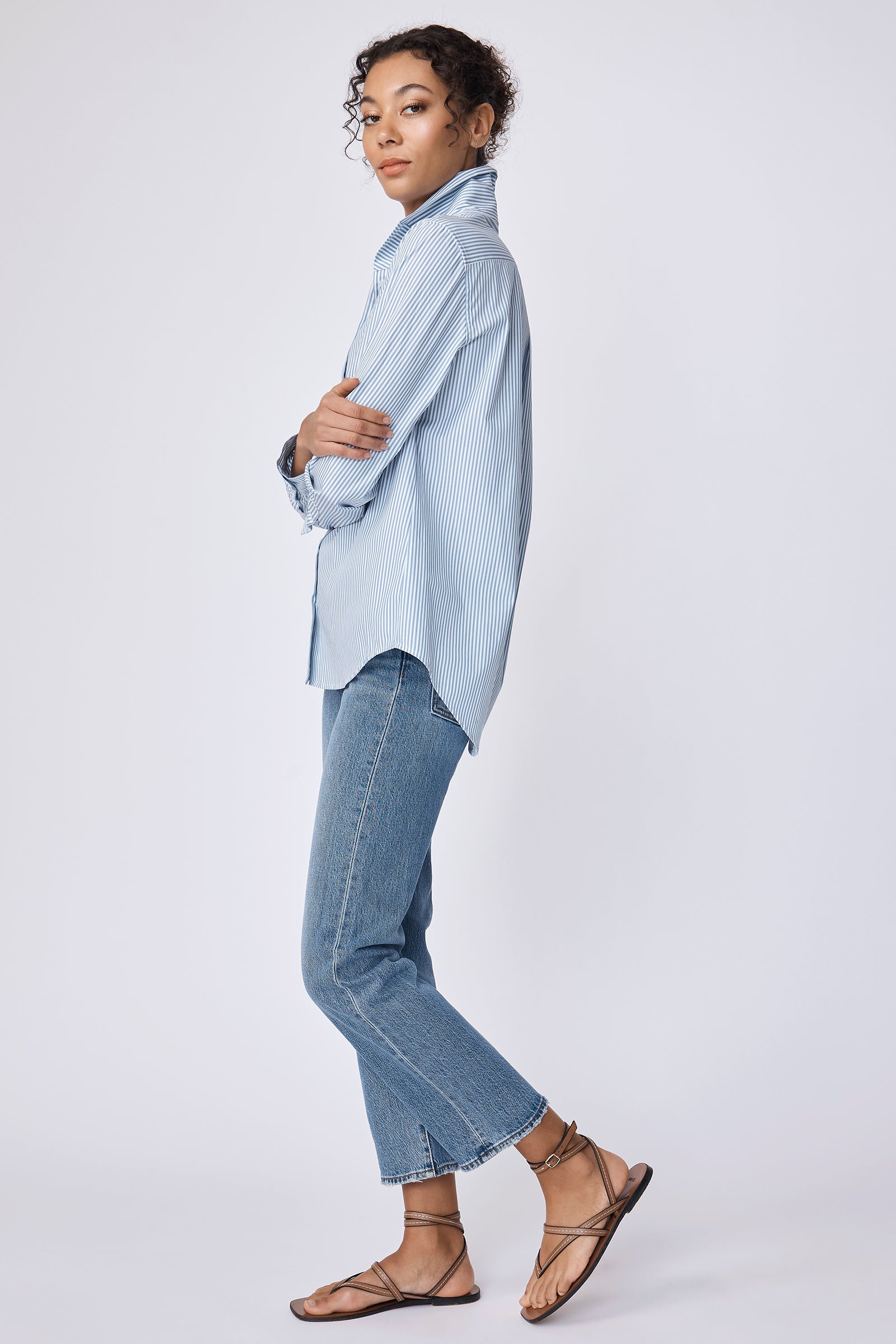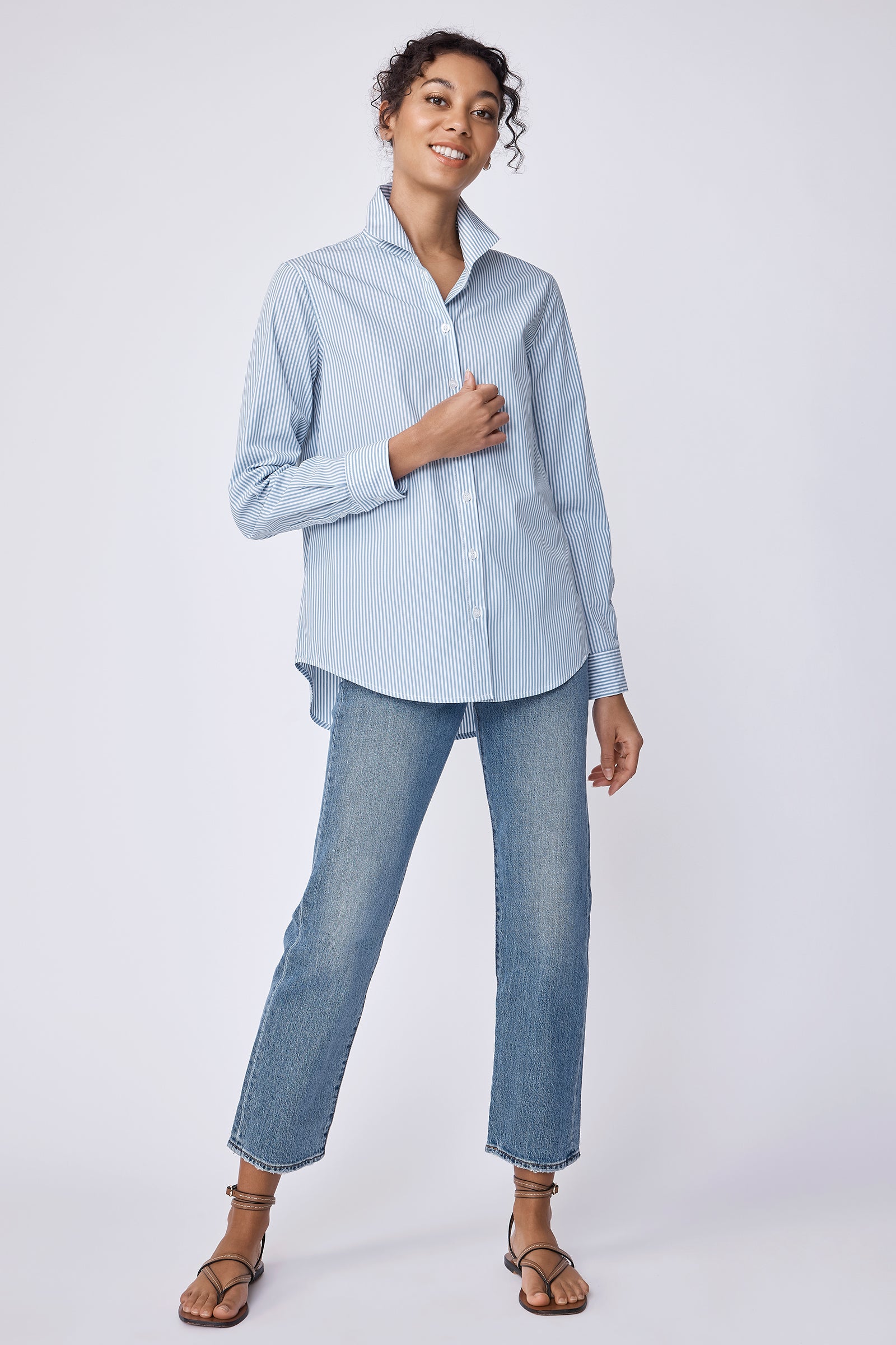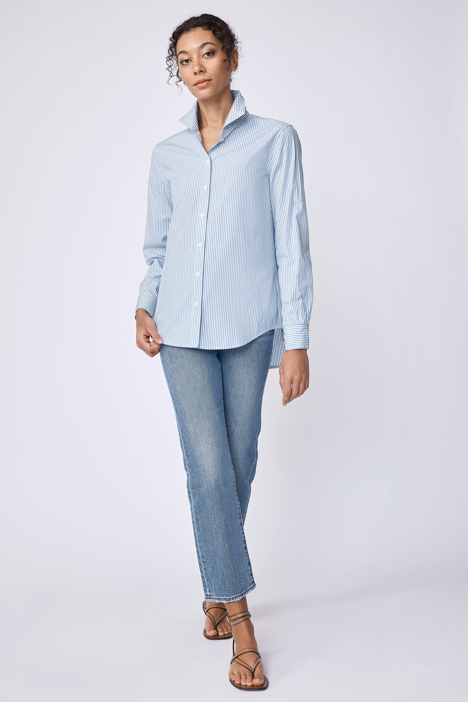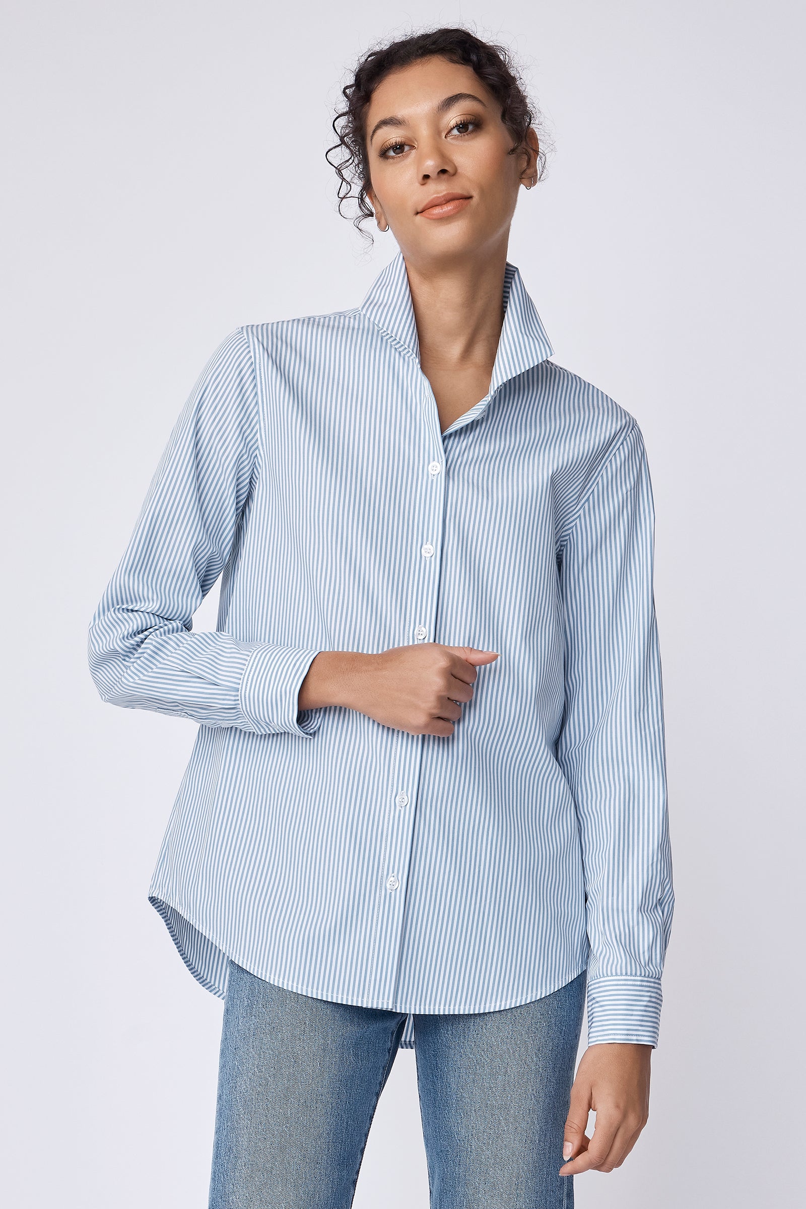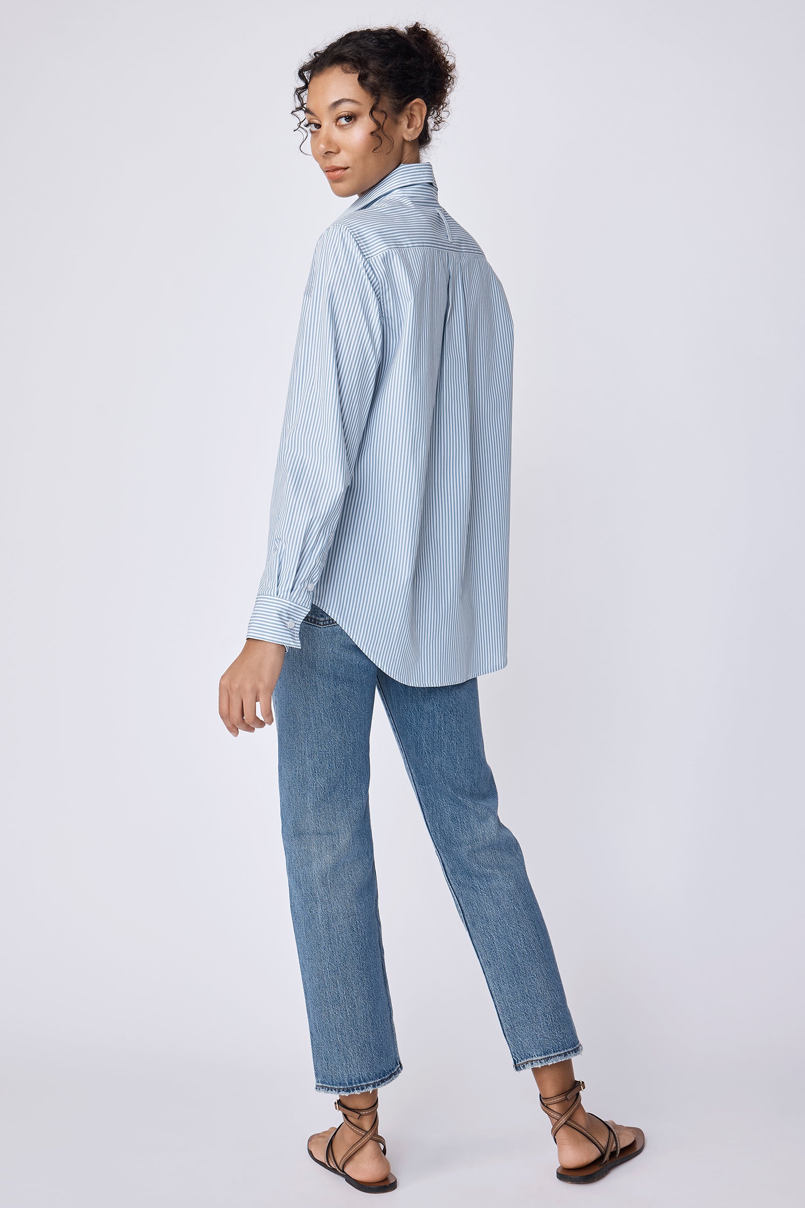 - Wake up your spring wardrobe our nostalgic stripes, a soft glow that feels like sunlight on your skin. Wear it tucked into high-waist jeans for a casual lunch with friends or layered under a blazer for effortless office polish. The back pleat makes the shirt move with you, keeping every step confident and easy. Small batch made in NYC for women who want their clothes to feel alive, not stiff.
