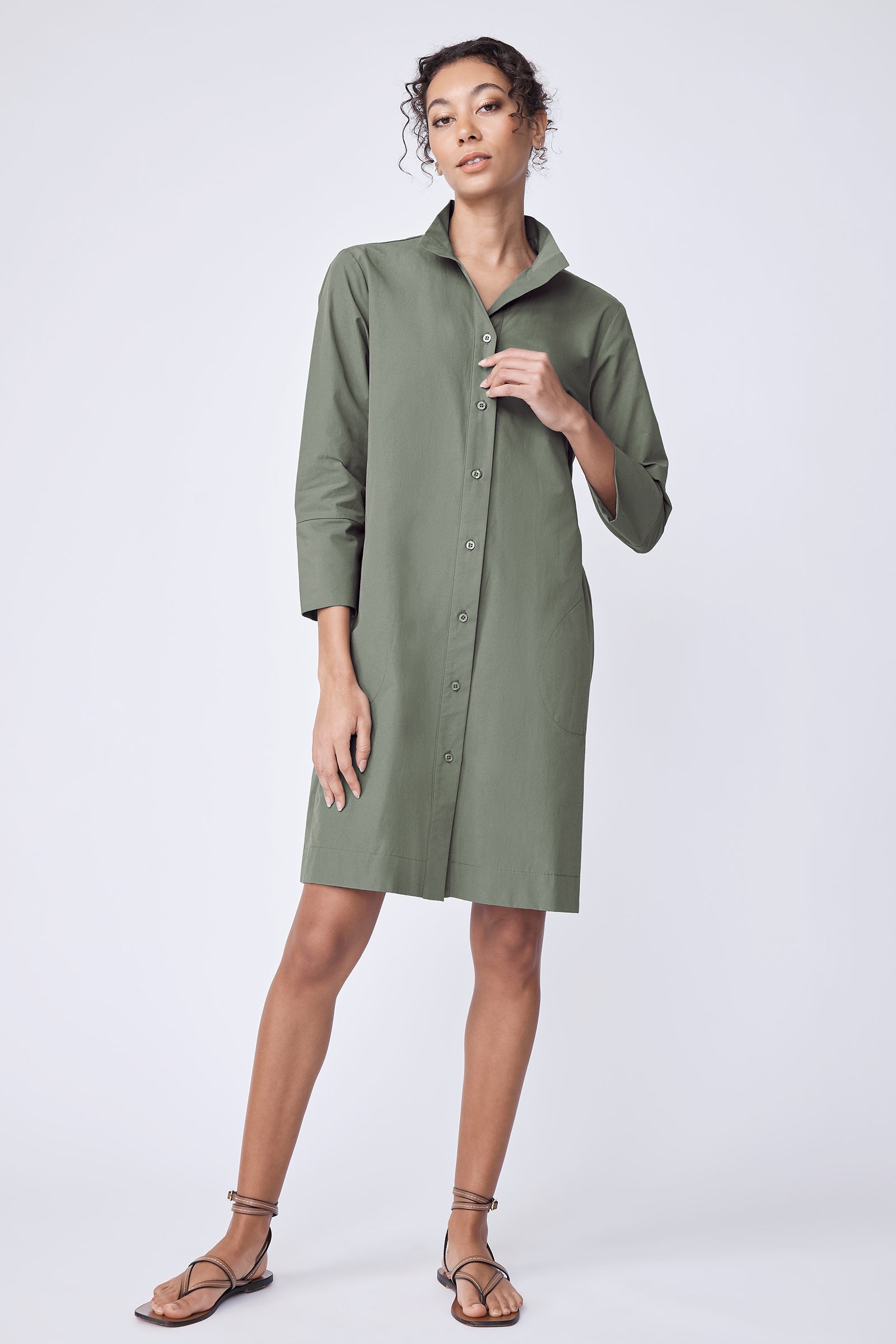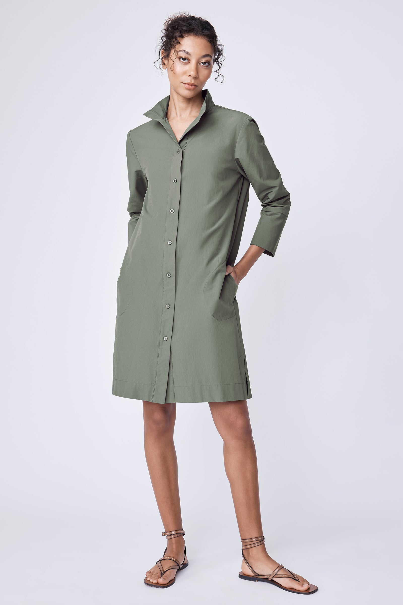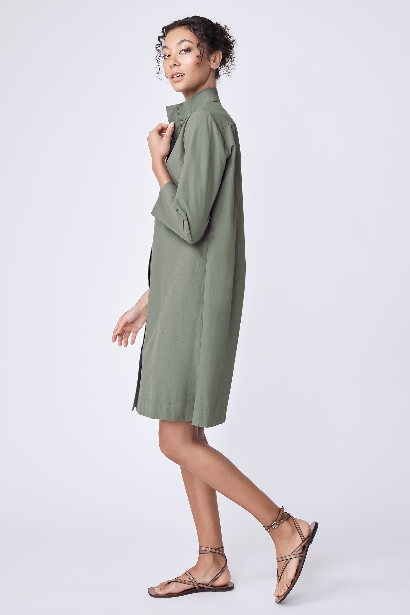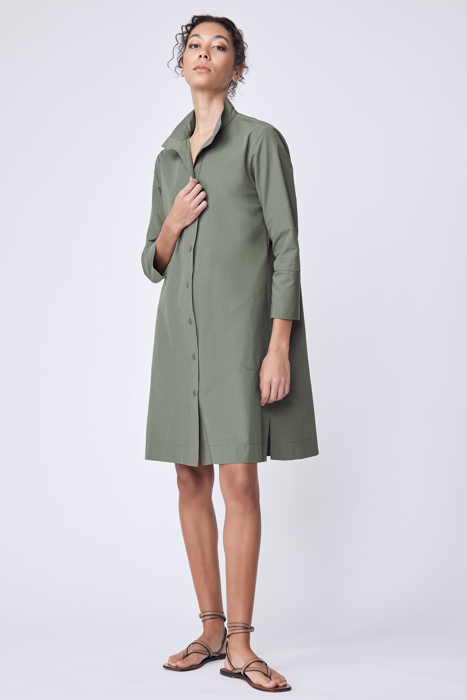 The Greta Dress balances clean tailoring with an easy, relaxed feel, finished with a high stand collar and barrel cuffs for quiet structure. Effortless enough for every day, this is the kind of staple that earns repeat wear, and quietly makes your day easier, every time you reach for it.