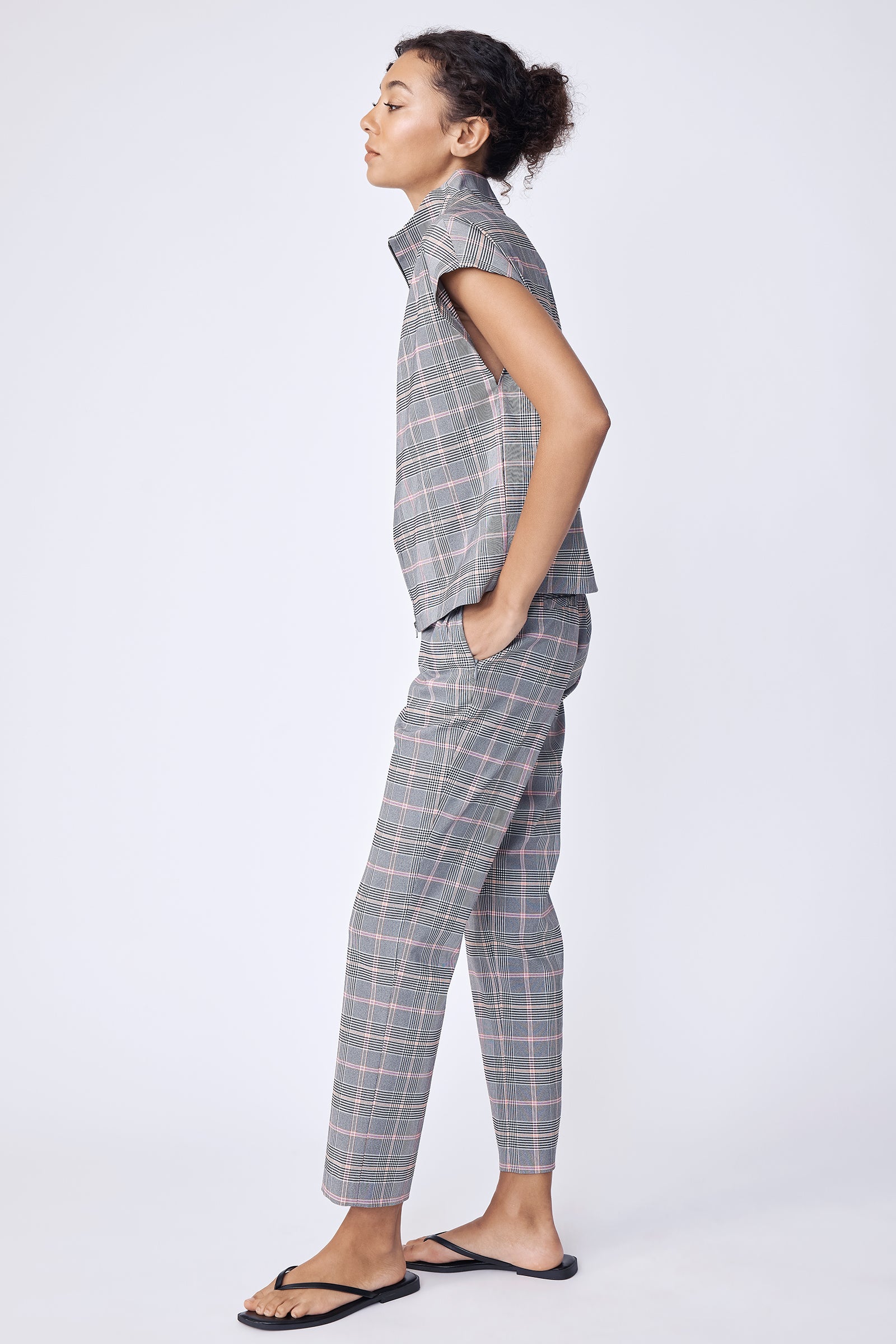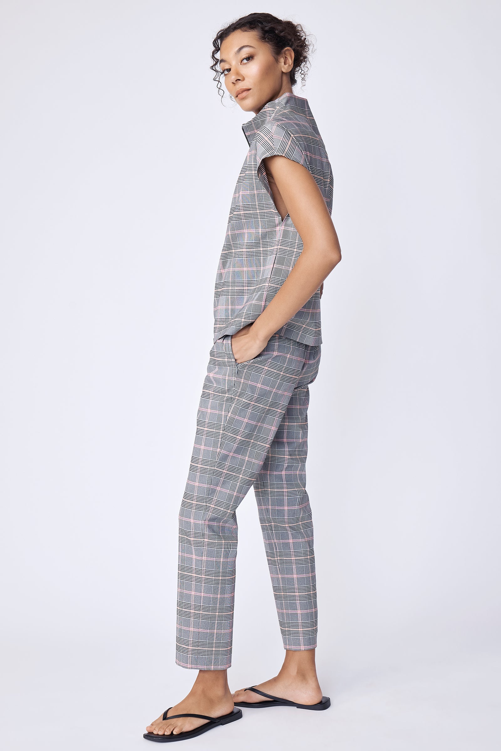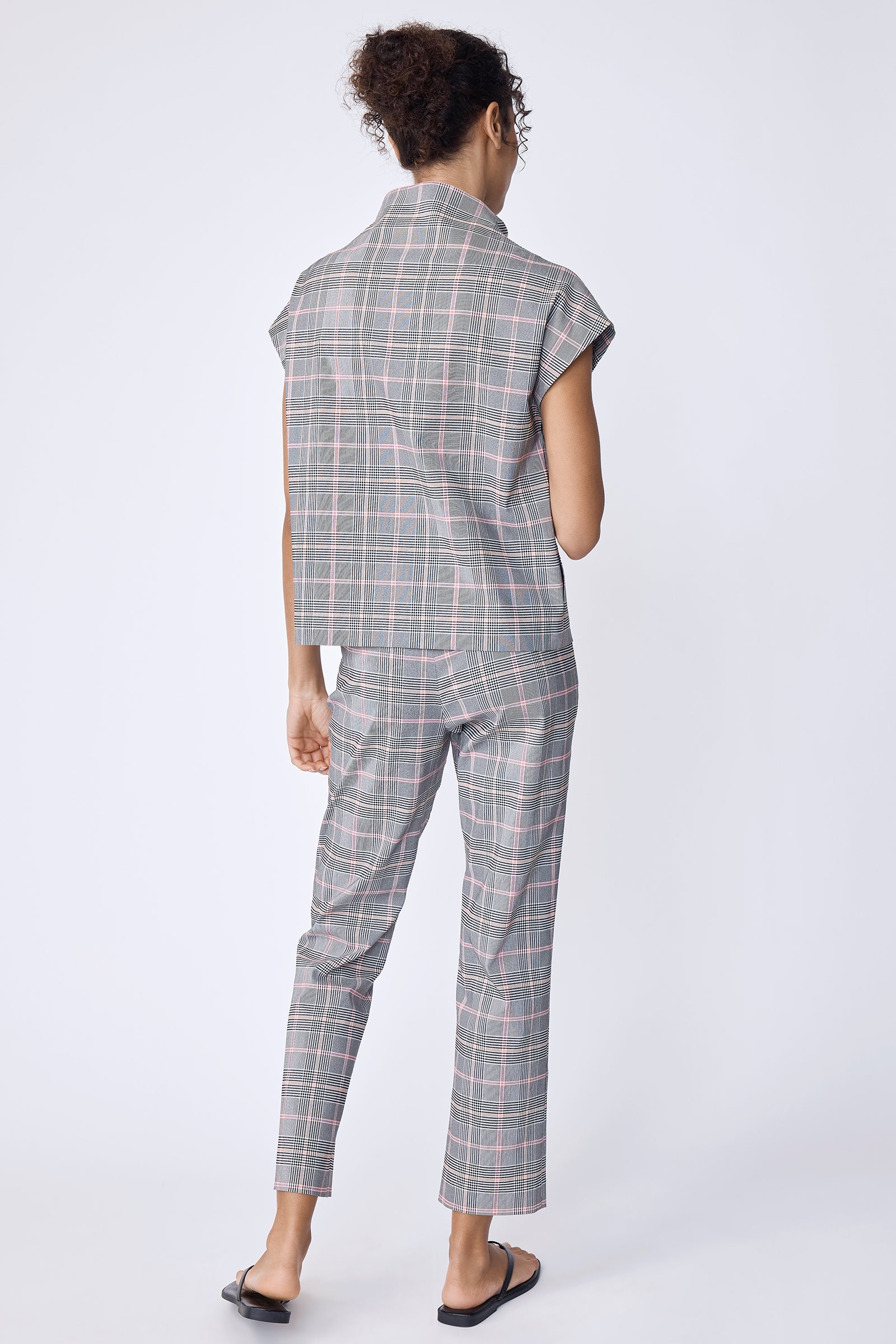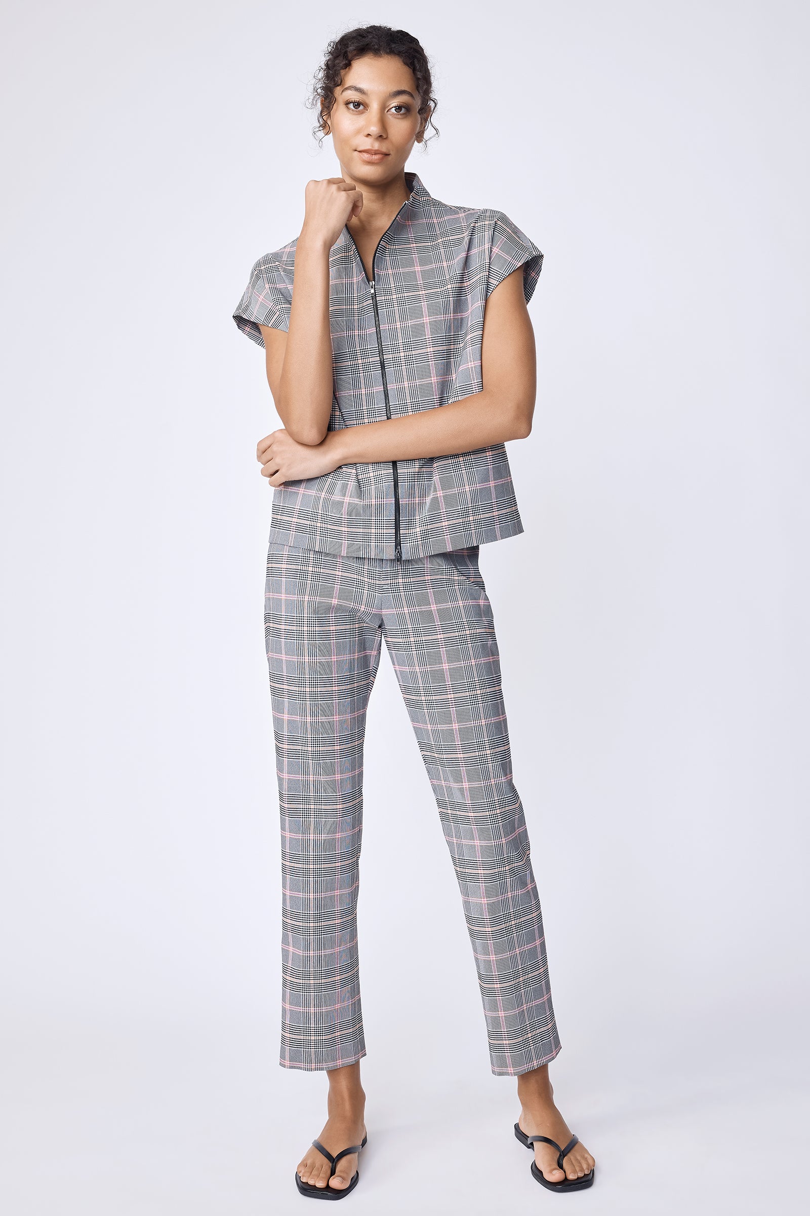The Lena Zip Vest, crafted in seasonal stretch plaids, is lightweight with a soft hand and just enough structure to pull a look together. Throw it over a tee or a tailored shirt for cooler mornings and breezy evenings. It’s the kind of piece that lives by the door and earns repeat wear.